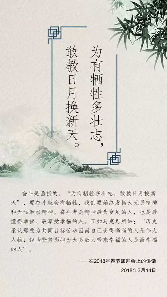2019年是新中国成立70周年,是决胜全面建成小康社会第一个百年奋斗目标的关键之年。初春时节,央视网梳理习近平总书记引用的八句古典名句,送给正在奋斗路上的你。