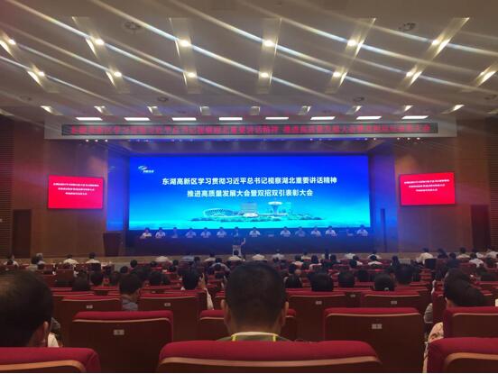 (通讯员 科技园武汉公司 胡小林)5月14日,东湖高新集团在东湖高新区政务服务中心举办“东湖高新区学习贯彻习近平总书记视察湖北重要讲话精神 推进高质量发展大会暨双招双引表彰大会”。本次会议不仅学习了习近平总书记4月考察武汉的重要讲话与中心思想,同时也对2017年对东湖新技术开发区招商引资、招才引智的企业和个人进行了表彰与颁奖仪式。其中,武汉东湖高新集团股份有限公司荣获“招商引资突出贡献企业”奖。