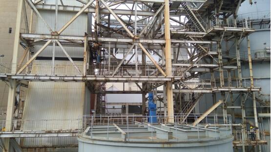 在超低排放改造后,钢结构同步完成改造,但原有结构表面防腐油漆未得到整体的恢复,整体观感较差。经多方努力和协调, 2018年6-8月份期间,分公司组织施工人员对现场钢结构表面进行了重新刷漆。刷漆后的钢结构不再“满脸坑疤”,表面焕然一新,有效提升了现场的文明生产形象,获得电厂及同级单位的一致好评。