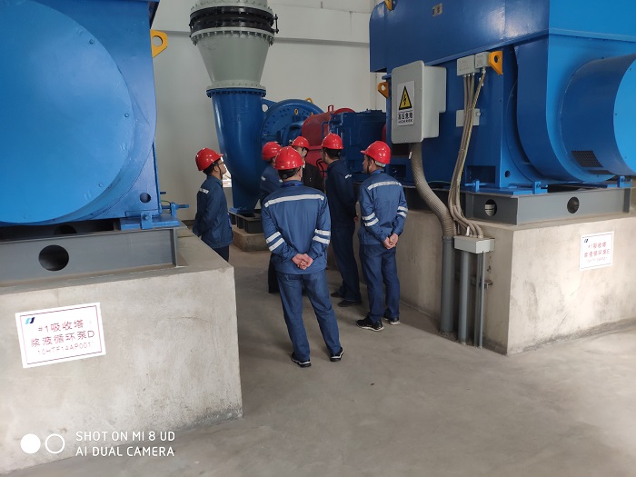 姚中栋一行先后参观了华电江陵电厂一期汽轮机房、主集控室、浆液循环泵房等,实地察看华电江陵电厂现场生产设备、设施、环境,并与华电江陵电厂运行部副主任杨华安就运行倒班模式、两票三制、班组安全学习等情况进行沟通和交流。