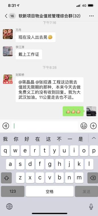 因武汉市交通管制,花城汇项目部分值班员工无法正常上班。花城汇工程员刘军桥主动请缨上班值守。刘军桥居住地距离项目11公里,他坚持每日步行至项目进行日常的消杀工作。他表示生活在武汉,他愿意为武汉抗击疫情献出自己的一份微薄之力。