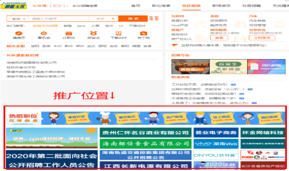 推广平台:51job长株潭频道首页A区大横幅、C区大横幅