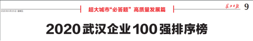 (通讯员 办公室 付裕)9月24日,武汉企业联合会、武汉企业家协会联合长江日报报业集团、武汉广播电视台、武汉发展战略研究院按照国际通行做法,依据申报企业2019年度营业收入共同发布2020武汉企业100强(综合百强)、制造业企业100强(制造业百强)、服务业企业100强(服务业百强)排序榜。东湖高新集团荣登2020年武汉企业100强(综合百强)50名,这是东湖高新集团连续第八年荣获“武汉企业百强”称号。