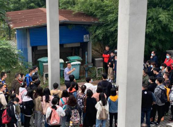 在参观前,钱涛对全体学生进行安全告知,强调参观过程中的一些注意事项,同时向全体学生介绍了该厂建立背景、主要污水处理工艺等,便于在参观过程中进行有针对性讲解。在参观过程中,钱涛现场引导学生先后参观中控室、污水处理生化反应池、出水检测室、污泥处理系统等每个污水处理环节的设施,并具体讲解各个工艺环节的主要作用和设备维护管理措施,及时为现场为学生答疑解惑。“边走边学”让学生得以更直观、系统地学习到污水处理全过程。