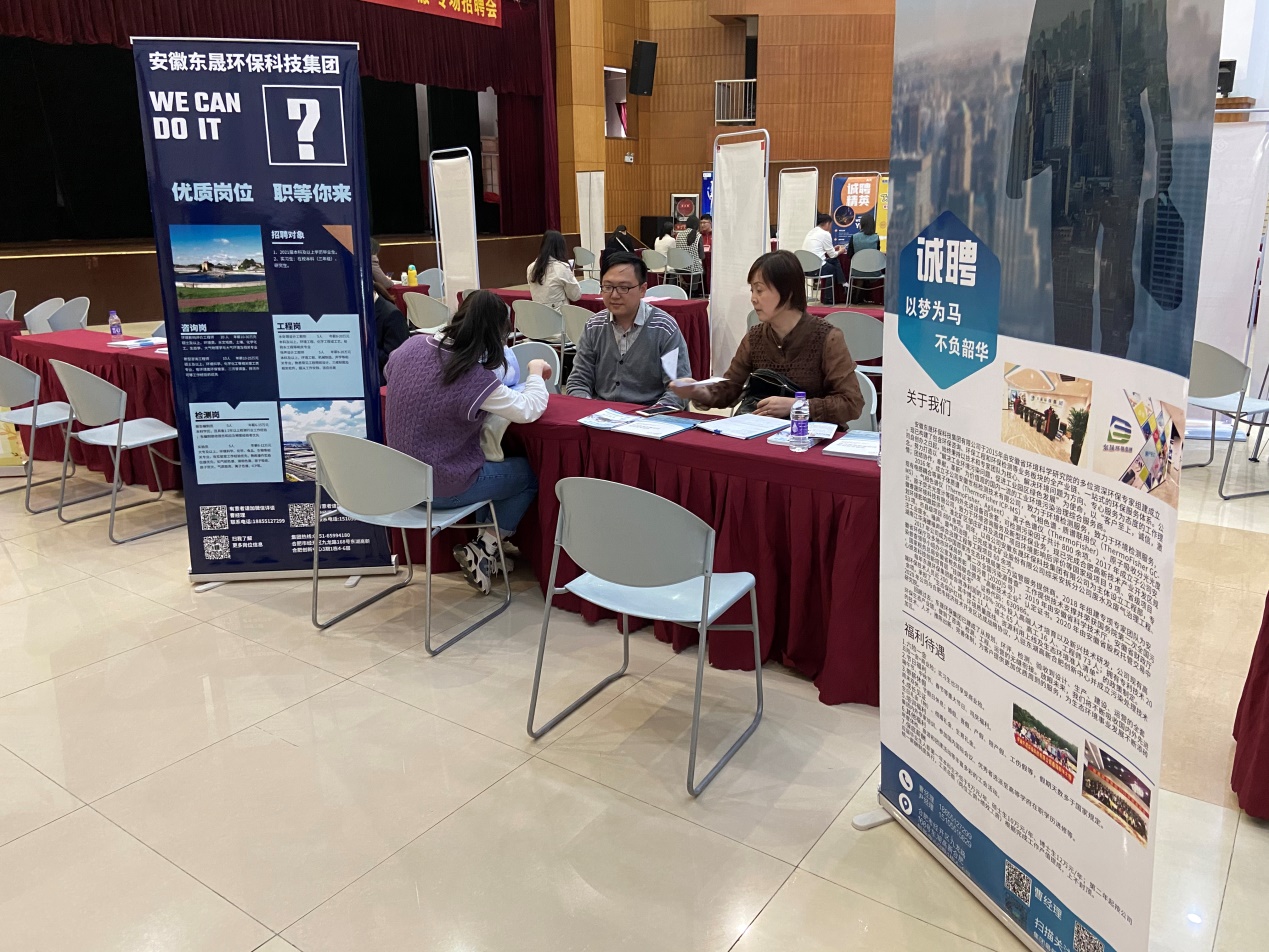 本次招聘会由东湖高新合肥公司组织企业参与,由安徽大学提供场地及组织学生参加,提供就业岗位30个,招聘需求近100人,岗位年薪最高达30-50万,其中安徽东晟环保科技集团有限公司发布了环境影响评价工程师、市场总监等高端职位。